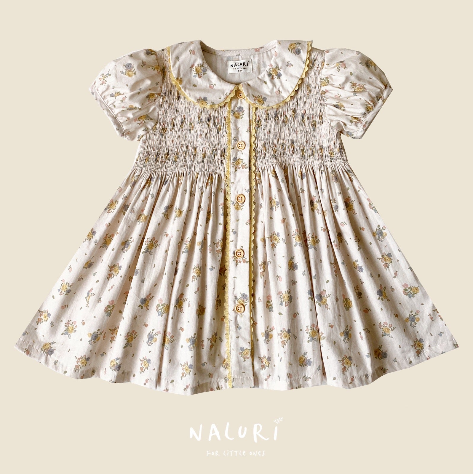 This floral patterned dress with smock decoration on the chest is very beautiful for your little one to wear. This dress is suitable for everyday wear and formal events. The beautiful motif is specially designed for the "Holiday Collection" by Naluri For Little Ones.
