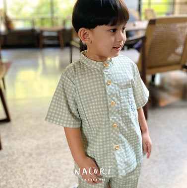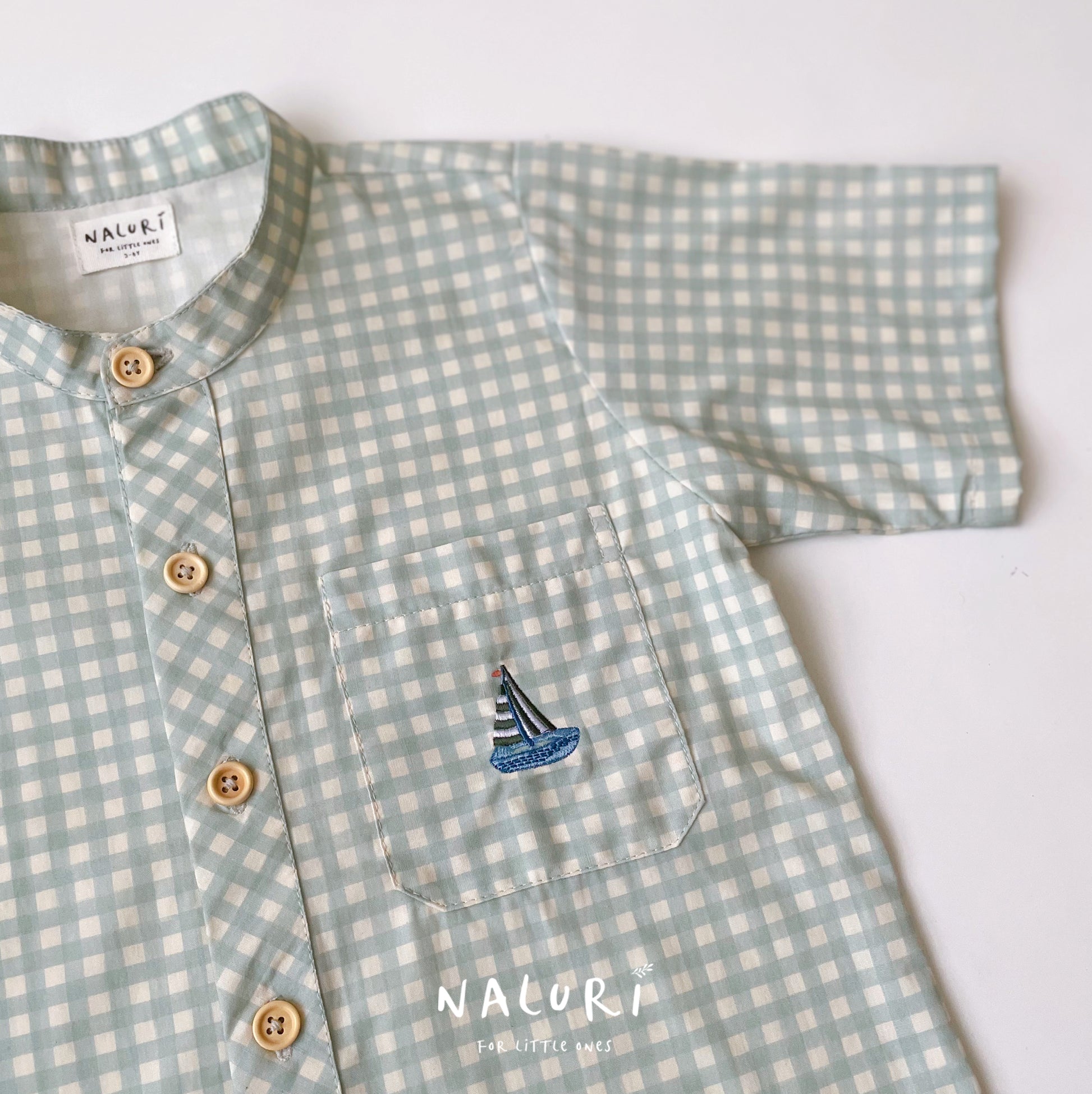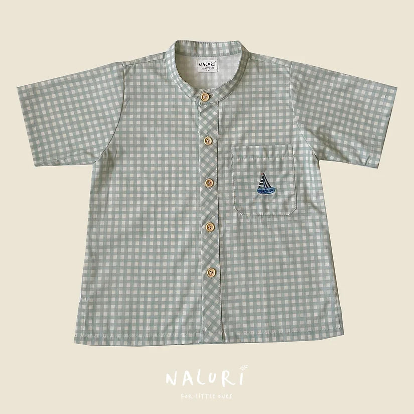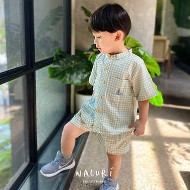 Boys' shirts with gingham motifs and ship images on the pockets, very cool for little ones to wear. This top is suitable to wear with corduroy trousers from Naluri. The motif was specially designed for the "Spring Garden Collection" by Naluri For Little Ones.