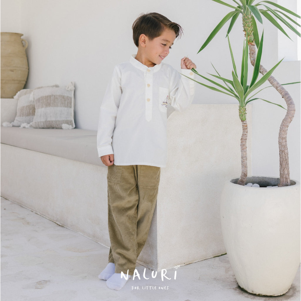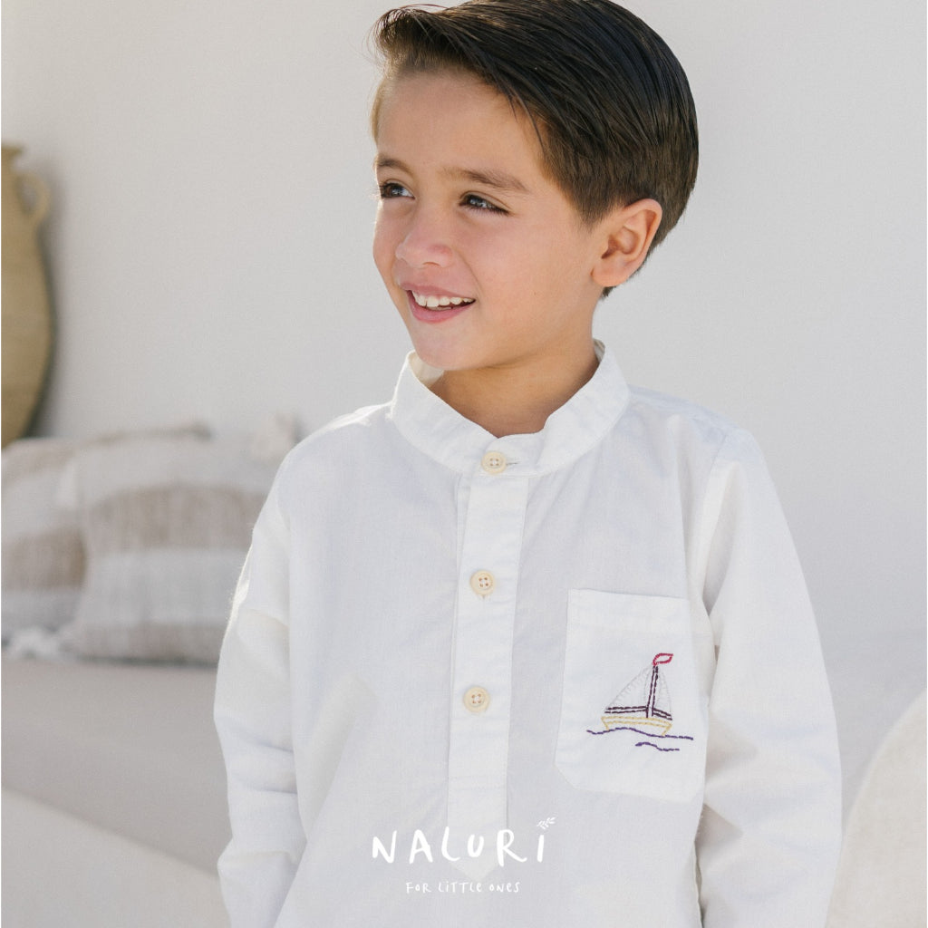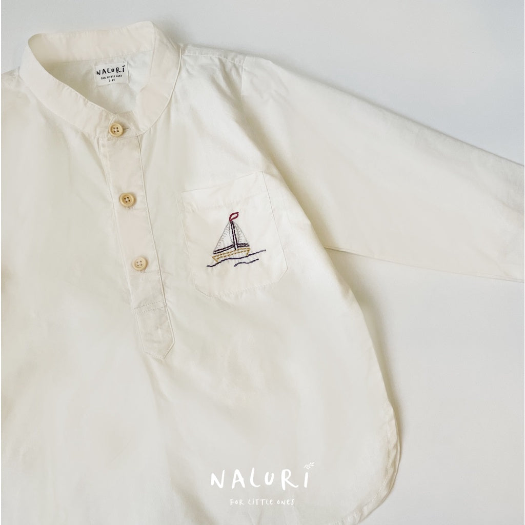 胸元に海を渡る船🚢の刺繍が入った男の子用シャツですオーガニックテンセル製で速乾性が高く暑い季節にも最適です☀️吸湿性、保湿性もあるので乾燥を防ぎオールシーズン着て頂けます🩵生地:オーガニックテンセルサイズ設定サイズ3-4歳=着丈40cm、胸囲74cmサイズ5-6歳=着丈45cm、胸囲78cm
